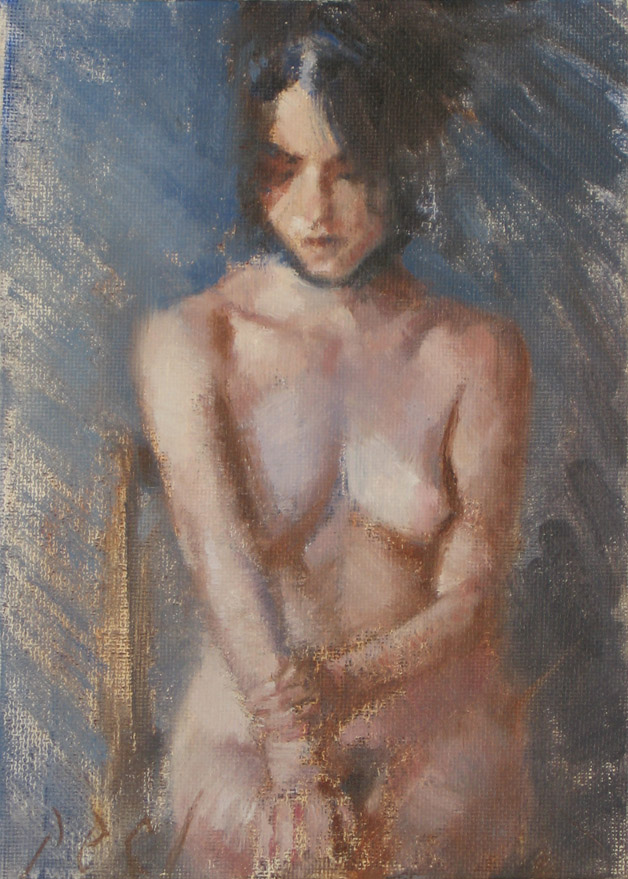 "Anticipation" 5×7 Seated Female nude Oil daily painting a day