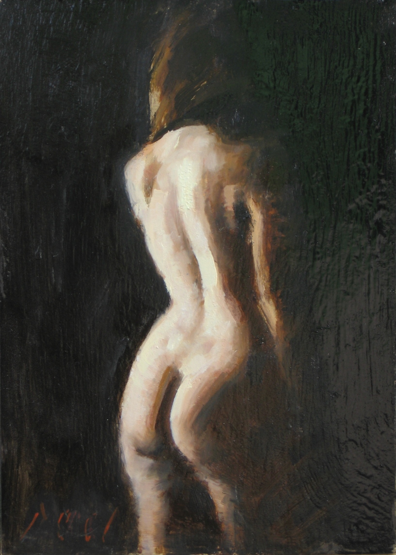 Did some more work on this five by seven, when I started it I ran out of ivory black, so it never got dark enough which is essential for a tonal painting like this, it came to the full value range on the second pass.