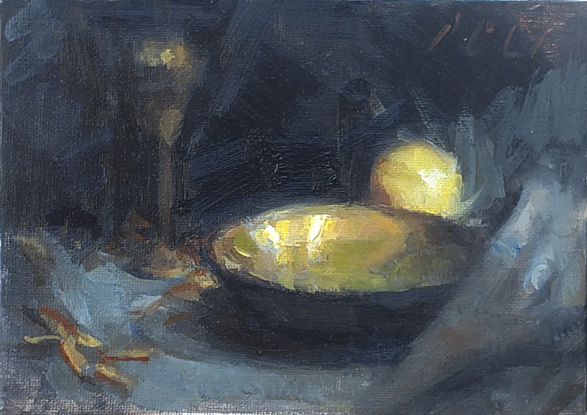 With a copper plate and a lemon – One of few still life studies that I painted this fall during my trip back home in Europe, this one has the most classical look and setup from all of them.