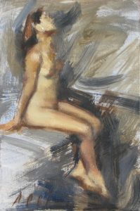 For a place beyond the present one, for a level beyond this one – one’s spirit aims high and flies way above the trees to the endless sky. 4×6 inches oil on primed panel sold