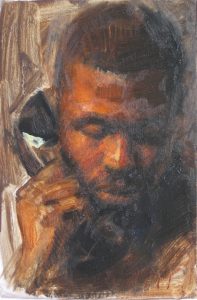 Remember the times – “ages ago” when we still used a landline to make a phone call? Remember the times – when privacy was important to us? 4×6 inches oil on gessoed panel sold